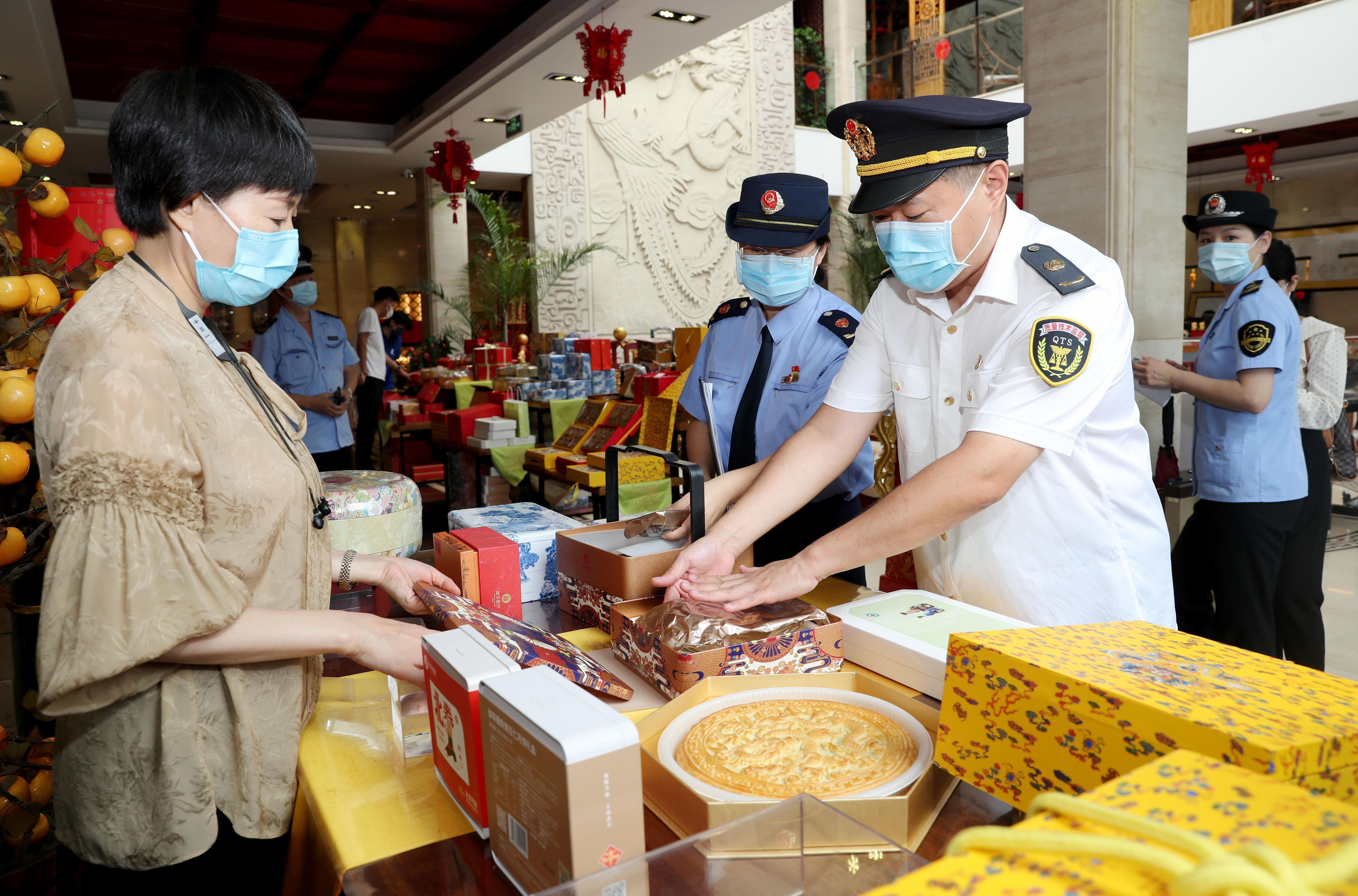 执法人员深入月饼生产一线进行安全监管。