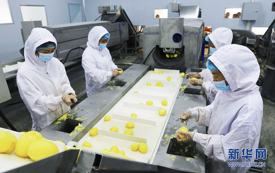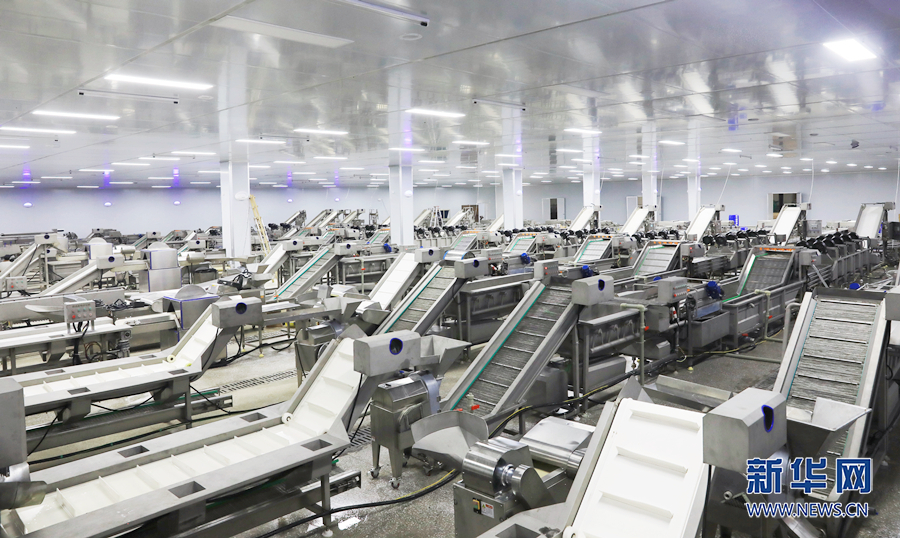 净菜加工厂20条果蔬加工生产线全面投产后日产能可达300吨。新华网发(廖唯 摄)