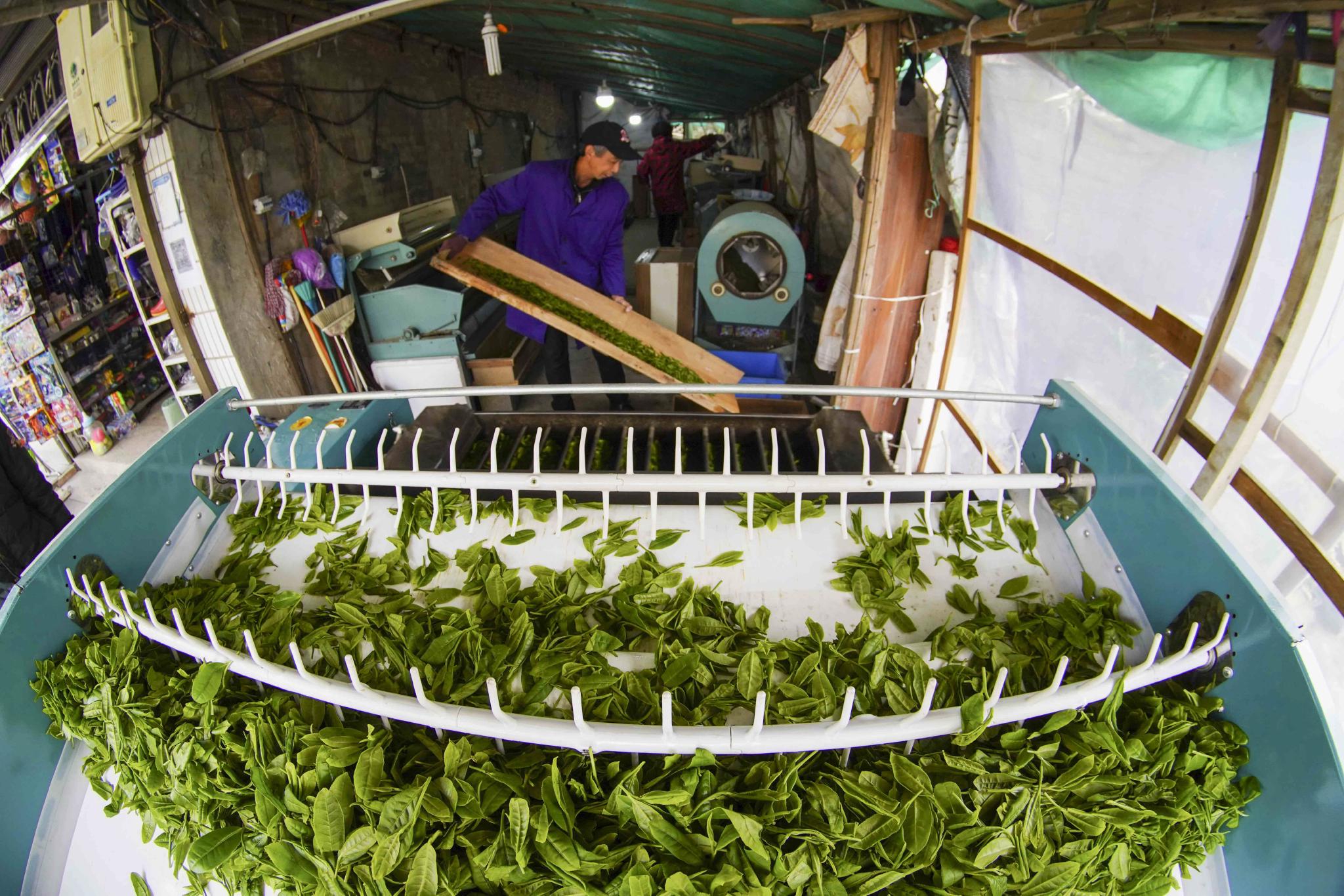 3月28日,在浙江省温州市永嘉县三江街道罗溪村,茶农忙着赶制明前茶。新华社发(苏巧将摄)