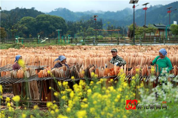 3月30日,通道侗族自治县播阳镇播阳村竹木加工厂,村民在分拣、晾晒刨花板木片。近年来,该县充分发挥本地竹木资源优势,通过“企业+基地+林农”的经营模式发展竹木加工产业,通过板材加工、木器制作等延伸产业链,提升竹木附加值,目前该县有规模较大的木材加工企业54家,带动了当地林农增收致富。